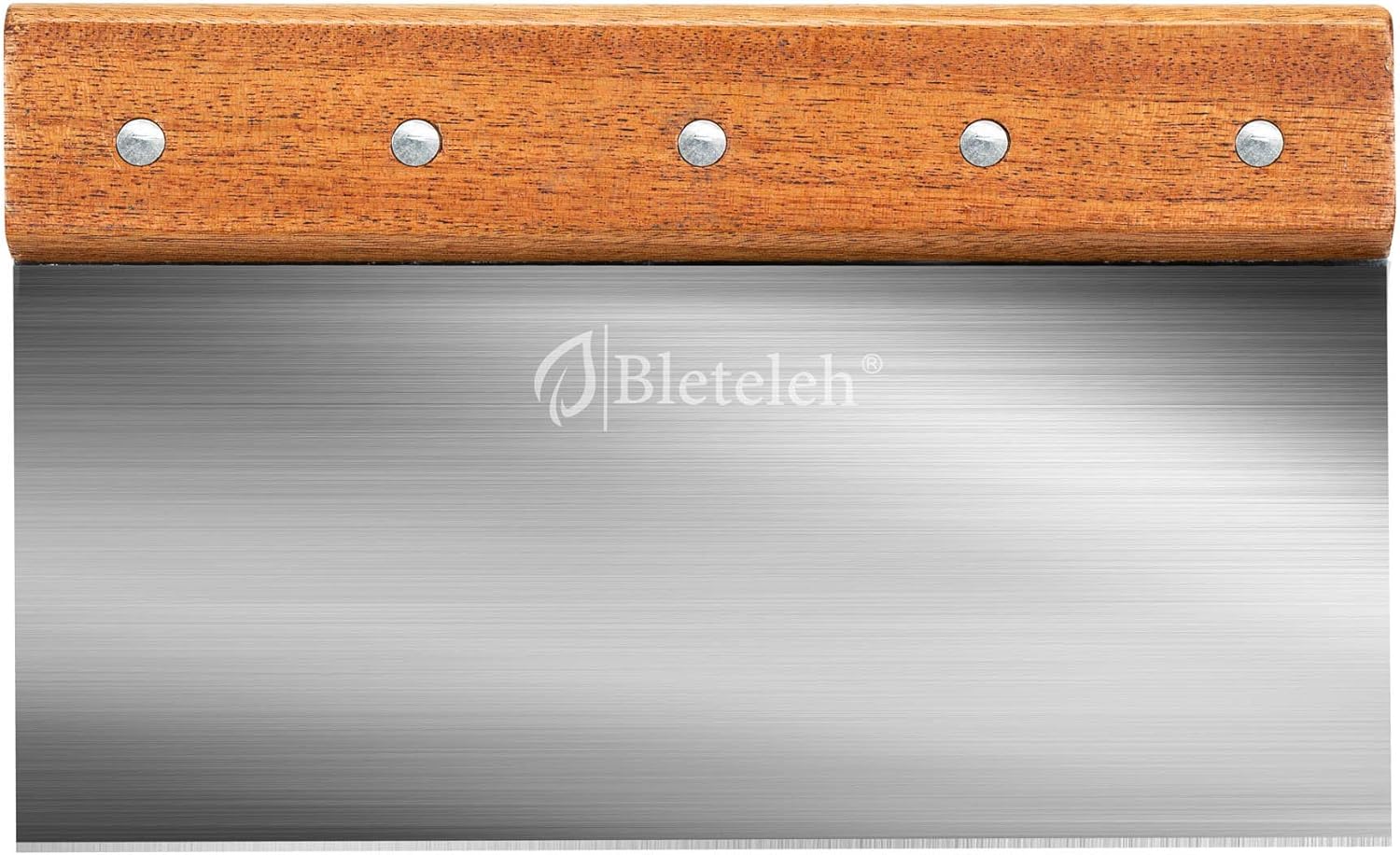 Bleteleh 8-inch long multi-purpose large kitchen tool to be used as: Dough cutter, dough scraper, bench scraper, brownie cutter, pastry cutter, vegetable and fruit chopper, cake batter spreader, cake icing smoother, chocolate coating spatula, cake decorating, bread making tool, hand chopper, and much more!